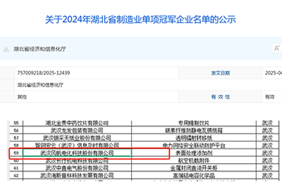 2025年4月16日,湖北省經濟和信息化廳發布2024年湖北省制造業單項冠軍企業名單,武漢風帆電化科技股份有限公司憑借表面處理添加劑在技術、性能、質量等方面的綜合優勢,以及名列前茅的市場占有率成功入圍并榮獲“2024年湖北省制造業單項冠軍企業”稱號。